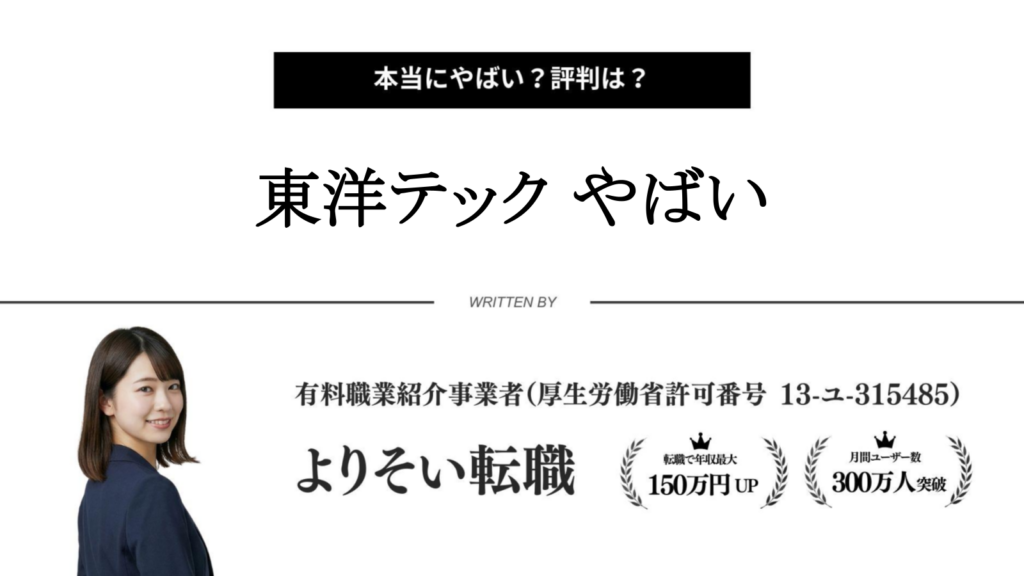 東洋テック株式会社について「やばい」「やめとけ」といった声がネット上で話題になることがありますが、実際の働き方や評判はどうなのでしょうか。 本記事では、東洋テ... -