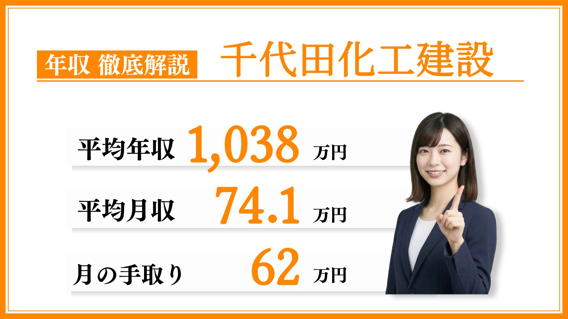 千代田化工建設の2025年3月期における平均年収は1,038万円(平均年齢42.5歳)です。