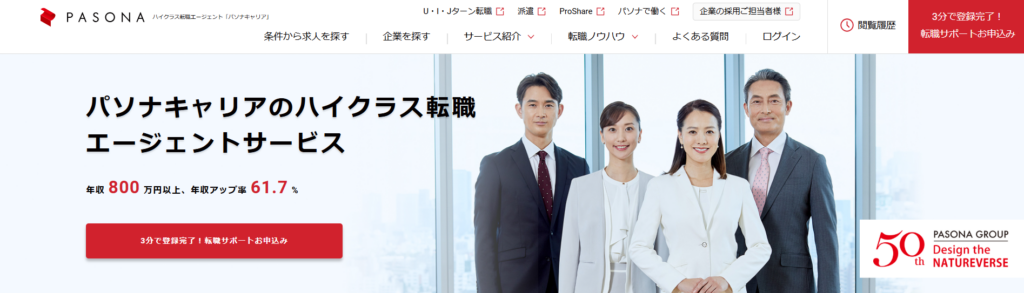 | パソナキャリア | 非公開 | 顧客満足度調査で高評価、サポート品質に定評 年収アップ率67.1%の実績 |