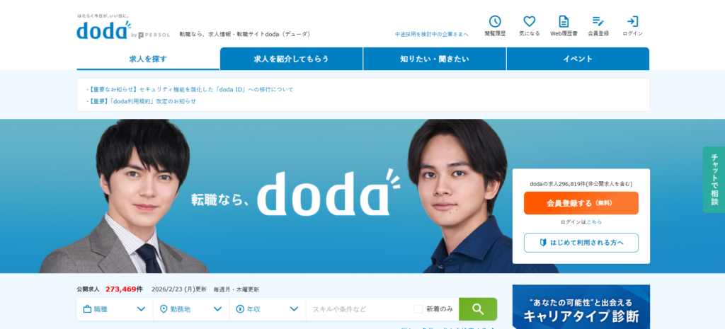 | doda | 約177,000件 | 第二新卒歓迎求人が約17万件以上とトップクラス サイト+エージェント統合で柔軟に使える |