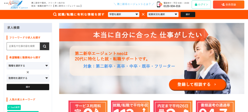 1. 第二新卒特化のサポート体制が充実