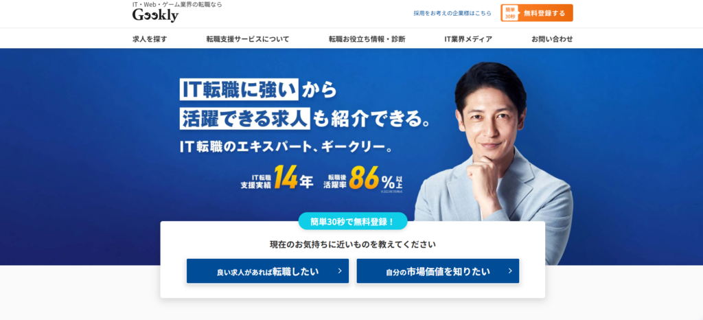 | Geekly(ギークリー) | 非公開 | IT・Web・ゲーム業界に特化 首都圏のIT求人に強くマッチング精度が高い |
