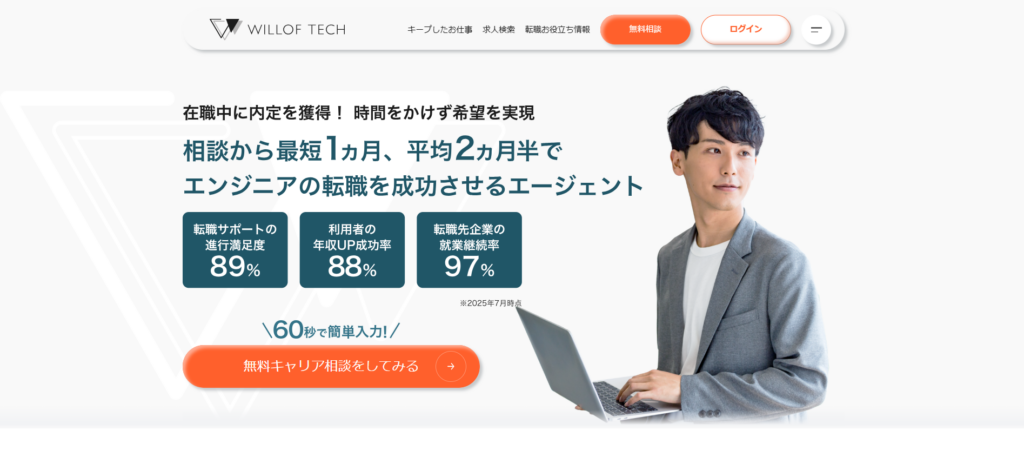 | ウィルオブテック | 非公開 | 2名体制のサポートで情報量が多い 年収アップに強く条件交渉が得意 |