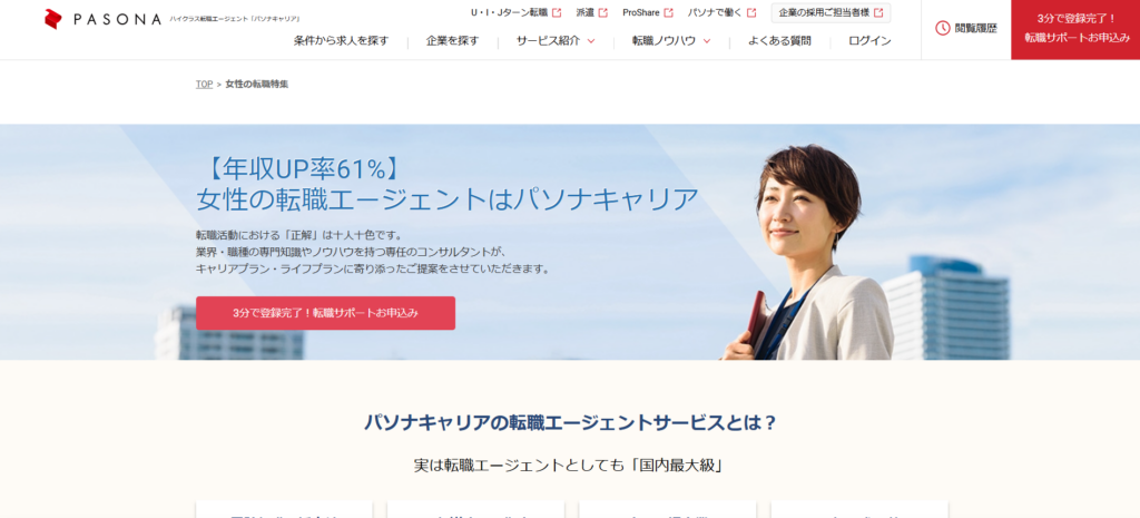 | パソナキャリア(女性活躍支援) | 非公開 | 女性の転職支援で40年以上の実績 管理職・専門職への転職にも強い |