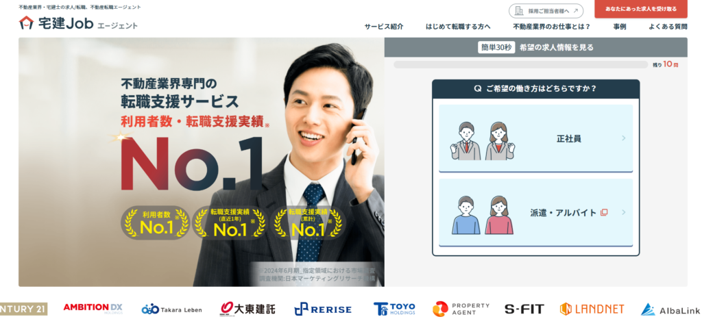 | 宅建Jobエージェント | 非公開 | 不動産業界に特化、業界知識が豊富 宅建資格保有者に強い |