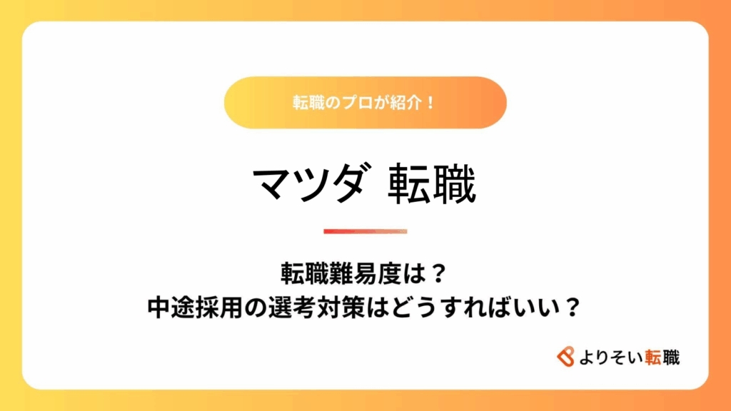 マツダへの転職を考えている方必見!本記事では、マツダ株式会社の企業概要から転職難易度、選考フロー、年収、リアルな口コミ、そしておすすめの転職サービスまで、知... -